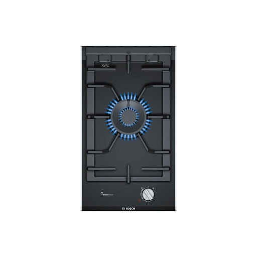 BoschA Built In Bosch Gas Hob in Black Number of Cooking Zones - 1 Dimensions: H 45 x W 306 x D 527mm Cast Iron Pan Supports Operating Method - Rotary ...