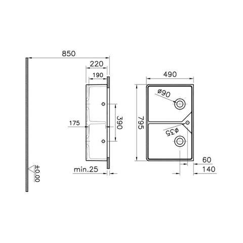 • Second Bowl Dimensions: W 397 x D 490 x H 190mm