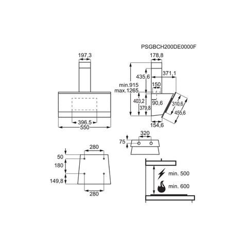• LAE48029: AEG DVB5560B 55cm Angled Chimney Hood - Black Glass
