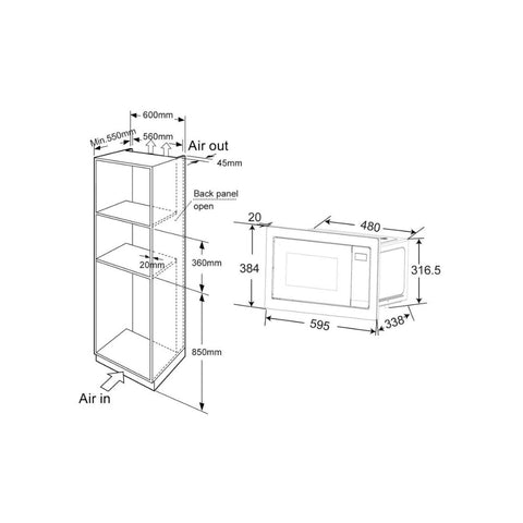 • Dimensions: H 384 x W 595 x D 338mm