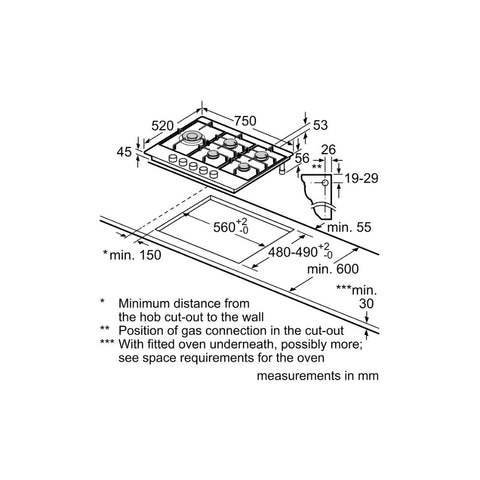 • LBS37028: Bosch Series 6 PCS7A5I90 75cm Gas Hob - Brushed Steel