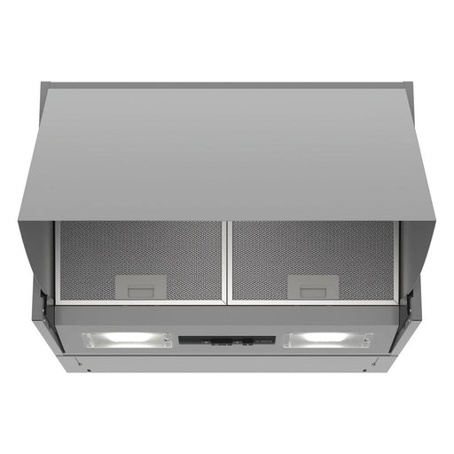 ElectroluxA Electrolux Integrated Hood in Silver Dimensions: H 400 x W 598 x D 270mm Maximum Extraction: 208 m³/h Noise Level: 67 dB(A) Includes 2x LED Ligh...