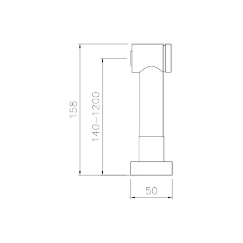• Tap Dimensions: Overall Height - 158mm; Spout Height - 0-1200mm; Spout Reach - 140mm; Base/Handle Width - 50mm
