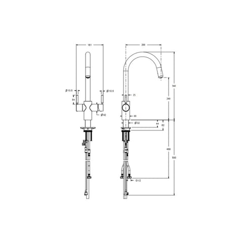 • Tap Dimensions: Overall Height - 360mm; Spout Height - 240mm; Spout Reach - 200mm; Base/Handle Width - 161mm
