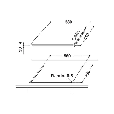 • Dimensions: H 50 x W 580 x D 510mm