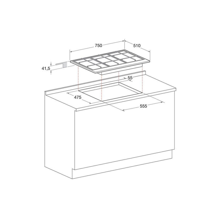 • Dimensions: H 40 x W 750 x D 510mm