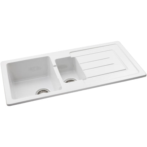 Abode Acton 1.5B & Drainer Ceramic Inset Sink - White