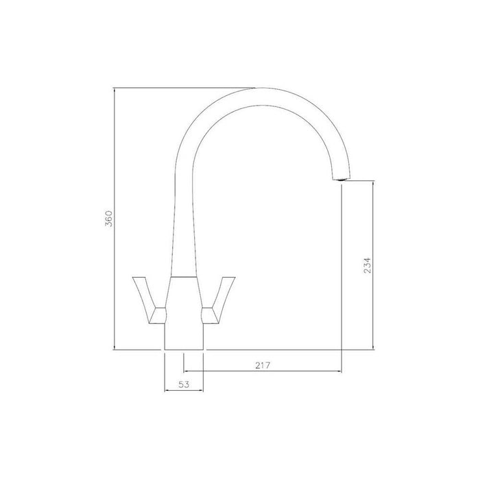 • Tap Dimensions: Overall Height - 360mm; Spout Height - 220mm; Spout Reach - 220mm; Base/Handle Width - 59mm