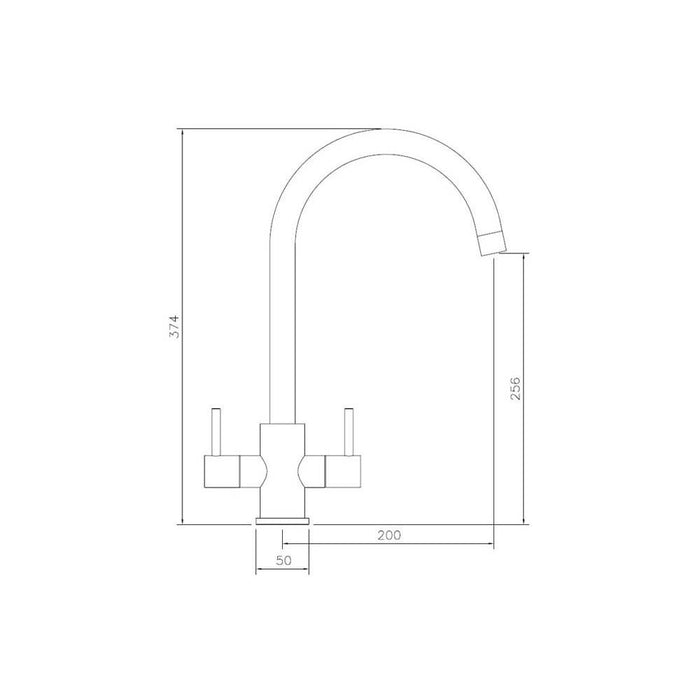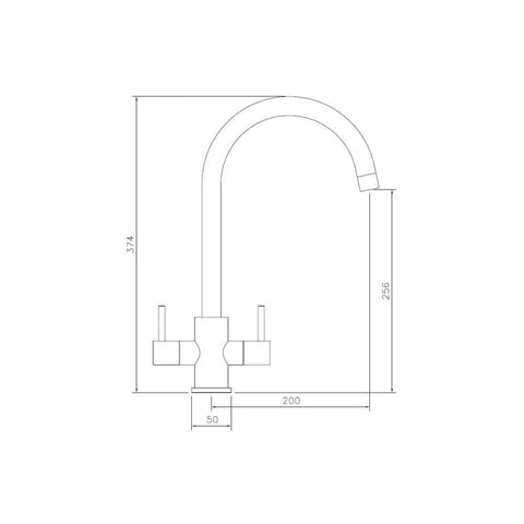 • Tap Dimensions: Overall Height - 374mm; Spout Height - 256mm; Spout Reach - 200mm; Base/Handle Width - 50mm