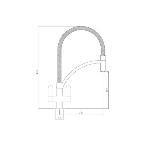 • Tap Dimensions: Overall Height - 437mm; Spout Height - 197mm; Spout Reach - 230mm; Base/Handle Width - 45mm