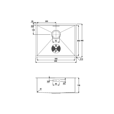 • AW5009: Abode Matrix R0 500mm 1B Undermount Sink - St/Steel