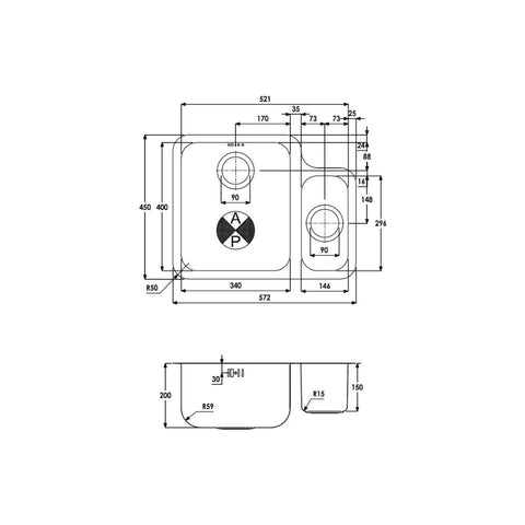 • Second Bowl Dimensions: W 146 x D 296 x H 150mm