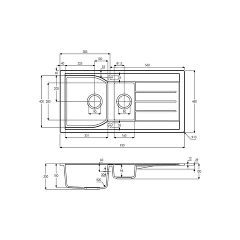 • Second Bowl Dimensions: W 163 x D 280 x H 93mm