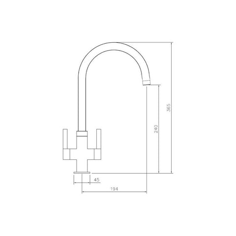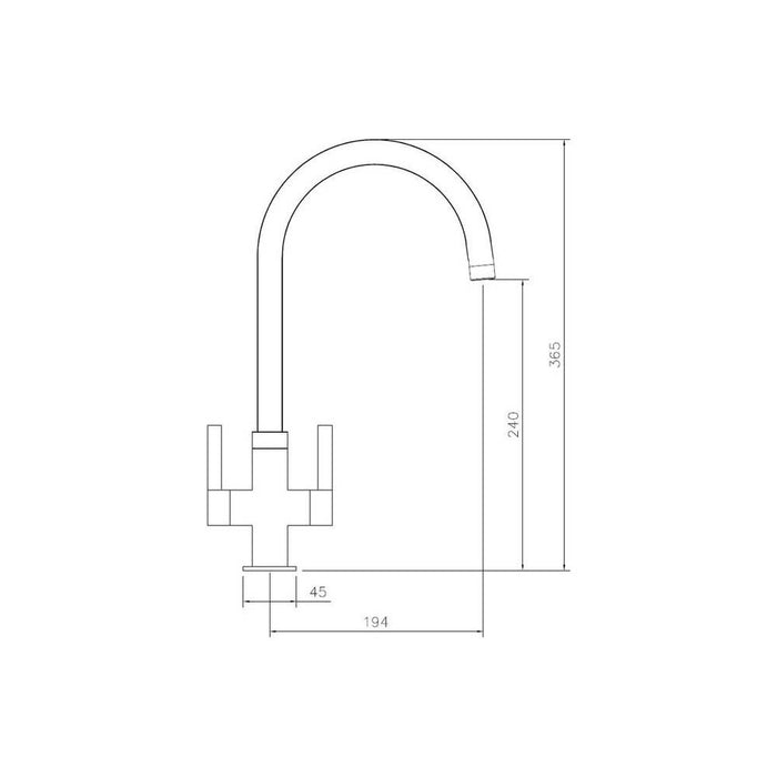 • Tap Dimensions: Overall Height - 365mm; Spout Height - 240mm; Spout Reach - 194mm; Base/Handle Width - 45mm