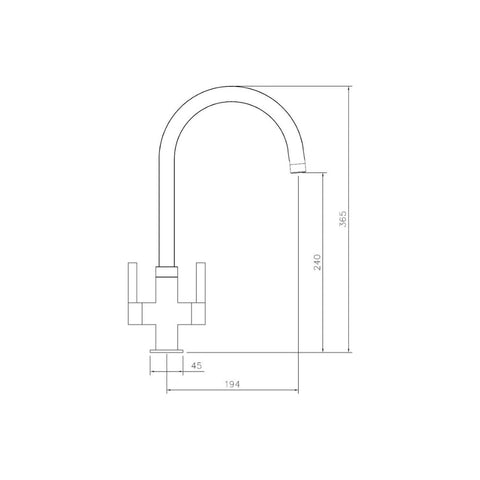 • Tap Dimensions: Overall Height - 365mm; Spout Height - 240mm; Spout Reach - 194mm; Base/Handle Width - 45mm