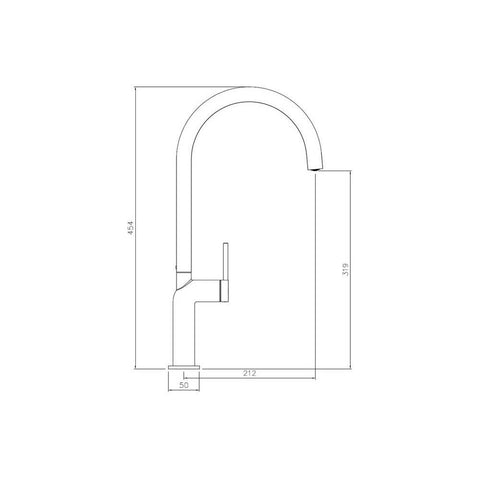 • Tap Dimensions: Overall Height - 454mm; Spout Height - 319mm; Spout Reach - 212mm; Base/Handle Width - 50mm