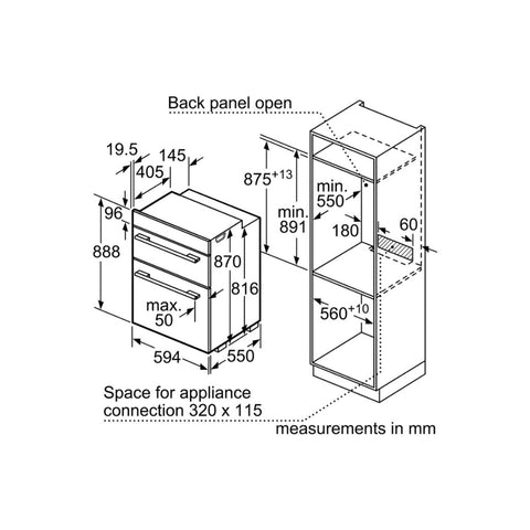 • Dimensions: H 888 x W 594 x D 550mm