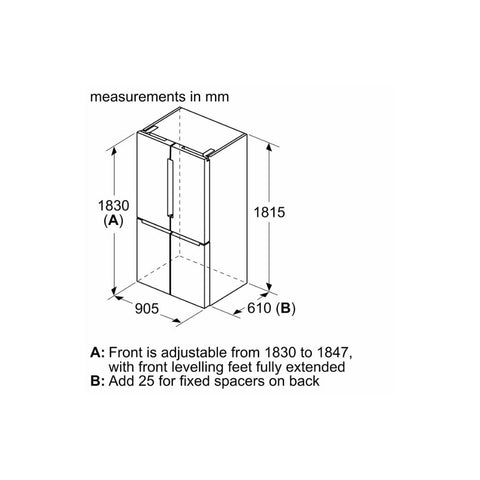 • LBS86041: Bosch Series 4 KFN96APEAG F/S NoFrost 4 Door Fridge Freezer - Metallic Silver