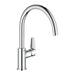 The tall dropped spout and tactile solid metal handle create an aesthetic balance that make this GROHE BauEdge single-lever kitchen tap a standout feature in modern kitchens. As well as stylistic appeal, this monobloc tap offers practicality and high performance. Thanks to the high spout you have plenty of room to wash even extra-large pots and pans, while the spout's smooth 360° swivel action offers optimum practicality and ease of use, perfect for double sinks. Control the flow using the solid metal handle, safe in the knowledge that the GROHE LongLife ceramic cartridge will deliver guaranteed precise volume and temperature levels. The GROHE Zero separated internal waterways mean that your drinking water is safely lead- and nickel-free, while the Easy Installation System with flexible connection hoses makes fitting this tap quick and hassle-free. The lustrous but hard-wearing GROHE Star Light chrome finish means this kitchen tap will keep its dazzling good looks through years of use.