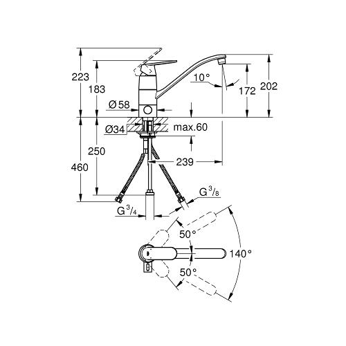 Maximum 140° turn lets you place your taps with confidenceFor the slightly narrower or boxed-in kitchen sink or bathroom basin. The tap has the classic smooth GROHE action but wont turn beyond 140°, so you can fit your sink or basin into a tight spot with complete peace of mind.