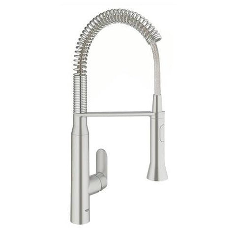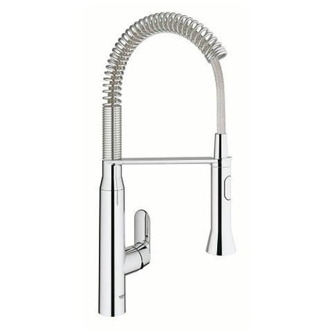 The new GROHE K7 Foot Control kitchen tap makes it easier than ever to fill big pots and clean down the basin and work surface. With a medium high spout that swivels through 140° and a pull-out Professional Spray that turns through a full 360°, it has a seriously long reach and cleaning power. You can even switch between a fine spray and a powerful jet with a push of a button. And now it has our innovative Foot Control technology so you can turn the water on and off with a simple tap of your feet on the base unit - perfect for when you are cleaning dishes, washing your hands or lifting heavy pans. Its a pleasure to use, too, as the GROHE SilkMove ceramic cartridges ensure controlling the flow and temperature of water is effortless and precise. With a multi-layered coating of the purest GROHE StarLight chrome, this one-hole single-lever monobloc has a brilliant and long-lasting shine while the easy installation system means you can fit it in no time. The GROHE K7 Foot Control kitchen tap - where professional level performance meets cool and contemporary kitchen style. Its time to master your kitchen like a true professional!