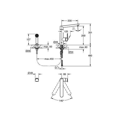 Maximum 140° turn lets you place your taps with confidenceFor the slightly narrower or boxed-in kitchen sink or bathroom basin. The tap has the classic smooth GROHE action but wont turn beyond 140°, so you can fit your sink or basin into a tight spot with complete peace of mind.