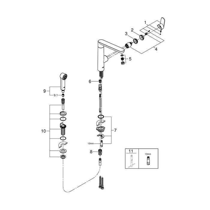 Cooking will be much more than just a hobby for you with this GROHE kitchen tap. Developed with professional chefs, it will spark your passion for cooking. Apart from its attractive design, you'll come to love its functional perfection. One particularly convenient extra is its separate side spray with a powerful shower jet that allows you to clean tall pots or even the entire sink thanks to its extensive reach. This sink mixer also comes with a high swivel spout that is ideal for filling tall pots. Our easy installation system ensures a quick and hassle-free mounting of the tap. Finished in the GROHE StarLight chrome coating, it will retain its luminous sheen even after years of use.