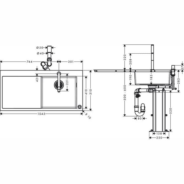 Suitable for: S51 SilicaTec sinks, S71 Stainless steel sinks, kitchen sinks with a depth of 400 mm and 410 mm