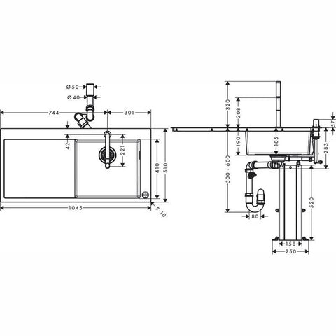 43205000: C71-F450-07 Sink Combination 450 With Drainer - Chrome