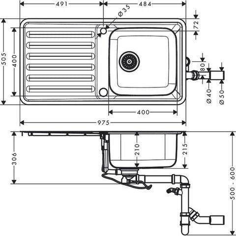 Hansgrohe S41 - S4113-F400 Built-In Sink 400/400 with Drainboard