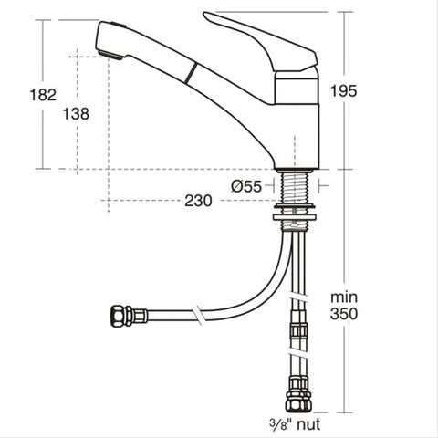 Suitable for high pressure balanced supplies. Inlets with flexible hoses with connections screwed 3/8in BSP female. Unregulated flow rate 10 litres per minute at 0.5 bar.