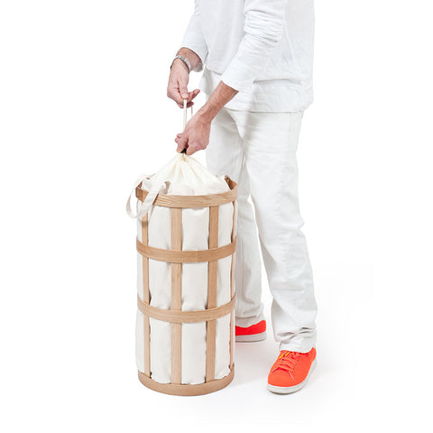 The Cage laundry basket is large enough to hold several pairs of jeans, long sleeve shirts and bed linen. The double thickness washable bag is made from heavy duty exterior fabric with taped and stitched seams and a smooth shear lining interior that won’t snag your delicates.