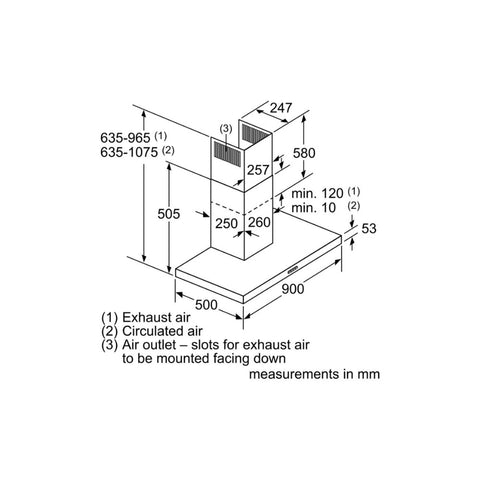 Height Of Chimney (mm) 635-965mm Ducting, 635-1075mm Recirculating