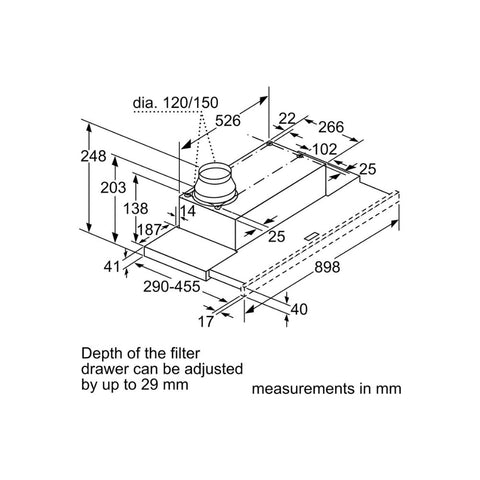 • Dimensions: H 203 x W 898 x D 290mm