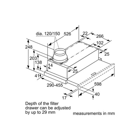 • LNE43205: Neff N50 D46ED22N1B 60cm Telescopic Hood - Metallic Silver