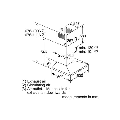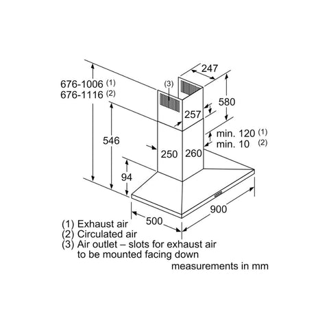Height Of Chimney (mm) 676-1006mm Ducting, 676-1116mm Recirculating