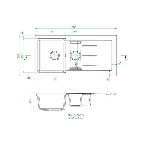• Second Bowl Dimensions: W 160 x D 340 x H 150mm