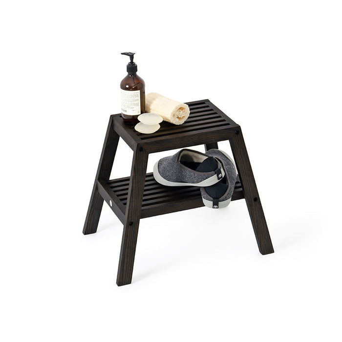 Store beneath a basin or next to a bath tub, this wooden Slatted Stool is a place to sit, stack towels, keep slippers and more. Easily portable to keep out of the way when not in use, but close at hand for those times when it’s just what you need. Available in many finishes to suit your bathroom style. Not suitable for use in a wet room, keep away from direct contact with water.