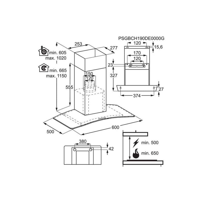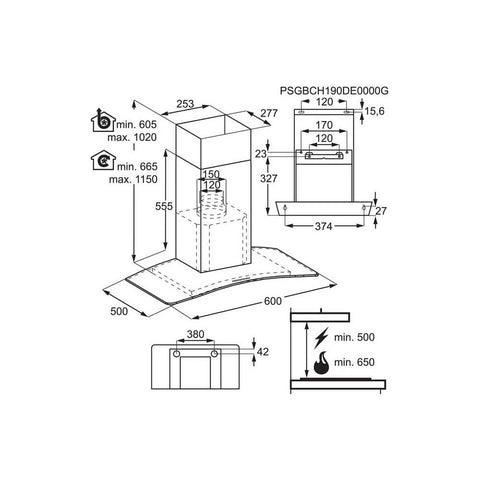 • LZA48006: Zanussi ZHC62352X 60cm Curved Glass Chimney Hood - Stainless Steel